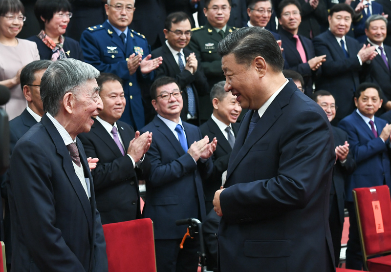 11月3日,2020年度國(guó)家科學(xué)技術(shù)獎(jiǎng)勵(lì)大會(huì)在北京人民大會(huì)堂隆重舉行。中共中央總書記、國(guó)家主席、中央軍委主席習(xí)近平向獲得2020年度國(guó)家最高科學(xué)技術(shù)獎(jiǎng)的中國(guó)航空工業(yè)集團(tuán)有限公司顧誦芬院士(右)和清華大學(xué)王大中院士(左)頒獎(jiǎng)。圖片來(lái)源:新華網(wǎng)
