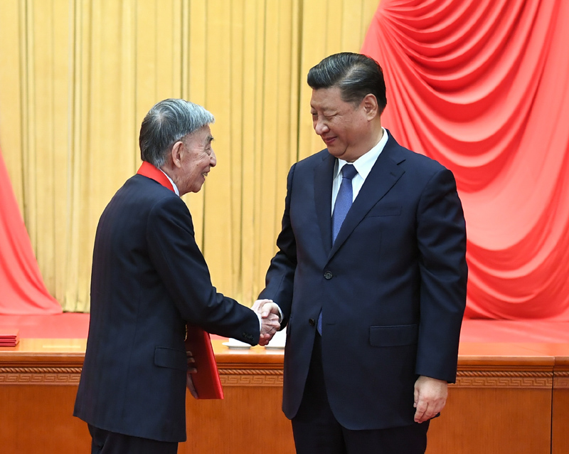 11月3日,2020年度國(guó)家科學(xué)技術(shù)獎(jiǎng)勵(lì)大會(huì)在北京人民大會(huì)堂隆重舉行。中共中央總書記、國(guó)家主席、中央軍委主席習(xí)近平向獲得2020年度國(guó)家最高科學(xué)技術(shù)獎(jiǎng)的清華大學(xué)王大中院士頒獎(jiǎng)。圖片來(lái)源:新華網(wǎng)