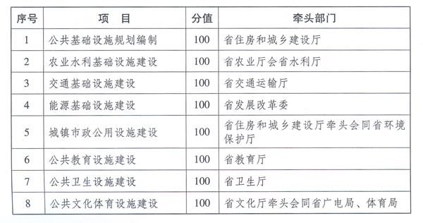 印發(fā)廣東省公共基礎(chǔ)設(shè)施建設(shè) 考核辦法(試行)的通知 ? 各地級(jí)以上市人民政府,各縣(市、區(qū))人民政府,省政府各部門(mén)、各直屬機(jī)構(gòu): 《廣東省公共基礎(chǔ)設(shè)施建設(shè)考核辦法(試行)》業(yè)經(jīng)省人民政府同意,現(xiàn)印發(fā)給你們,請(qǐng)認(rèn)真貫徹執(zhí)行。 ? ? 廣東省人民政府辦公廳 二〇一一年一月二十日 ? ? ? ? ? 廣東省公共基礎(chǔ)設(shè)施建設(shè)考核辦法 (試行) ? 為加強(qiáng)全省公共基礎(chǔ)設(shè)施建設(shè)考核工作,確保省委省政府有關(guān)決策部署落到實(shí)處,特制訂本考核辦法。 一、考核對(duì)象和內(nèi)容 (一)考核對(duì)象為各市、縣政府。 ?。ǘ┛己藘?nèi)容為各市、縣政府落實(shí)《珠江三角洲地區(qū)改革發(fā)展規(guī)劃綱要(2008-2020年)》、《中共廣東省委廣東省人民政府關(guān)于促進(jìn)粵東地區(qū)實(shí)現(xiàn)“五年大變化”的指導(dǎo)意見(jiàn)》(粵發(fā)〔2009〕14號(hào))、《中共廣東省委廣東省人民政府關(guān)于促進(jìn)粵西地區(qū)振興發(fā)展的指導(dǎo)意見(jiàn)》(粵發(fā)〔2009〕15號(hào))、《中共廣東省委廣東省人民政府關(guān)于促進(jìn)粵北山區(qū)跨越式發(fā)展的指導(dǎo)意見(jiàn)》(粵發(fā)〔2010〕5號(hào))、《印發(fā)廣東省基本公共服務(wù)均等化規(guī)劃綱要(2009-2020年)的通知》(粵府〔2010〕153號(hào))等文件提出的公共基礎(chǔ)設(shè)施建設(shè)目標(biāo)任務(wù)和分階段工作任務(wù),重點(diǎn)考核編制公共基礎(chǔ)設(shè)施規(guī)劃,建設(shè)農(nóng)業(yè)、水利、交通、能源等基礎(chǔ)設(shè)施,城鎮(zhèn)市政公用設(shè)施,公共教育、衛(wèi)生、文化、體育設(shè)施等方面工作目標(biāo)和任務(wù)的年度完成情況。 二、考核指標(biāo)和分值 考核指標(biāo)分為公共基礎(chǔ)設(shè)施規(guī)劃編制、農(nóng)業(yè)基礎(chǔ)設(shè)施、水利基礎(chǔ)設(shè)施(含農(nóng)田水利設(shè)施)、交通基礎(chǔ)設(shè)施、能源基礎(chǔ)設(shè)施、城鎮(zhèn)市政公用設(shè)施、公共教育設(shè)施、公共衛(wèi)生設(shè)施、公共文化體育設(shè)施等九項(xiàng)指標(biāo)(見(jiàn)下表),由表中各牽頭部門(mén)會(huì)同相關(guān)部門(mén)分別負(fù)責(zé)。 省各有關(guān)部門(mén)根據(jù)各自工作職責(zé),對(duì)考核項(xiàng)目和相應(yīng)分值制定考核細(xì)則,報(bào)省政府批準(zhǔn)后實(shí)施。 三、考核程序和方式 2010年度進(jìn)行預(yù)考核,由省直各部門(mén)根據(jù)《2010年省政府工作報(bào)告》和省各相關(guān)部門(mén)2010年初分解下達(dá)的工作任務(wù),于2011年2月底前對(duì)各市、縣的完成情況進(jìn)行考核評(píng)分,并將結(jié)果報(bào)省府辦公廳(督辦處)。考核結(jié)果作為2011、2012年考核結(jié)果的參考,不通報(bào)全省。 2011、2012年度考核,由省直各相關(guān)部門(mén)分別于2011、2012年2月底前制訂本年度各市、縣需完成的工作任務(wù)和具體指標(biāo),由省府辦公廳(督辦處)匯總并報(bào)省政府審定后下發(fā)給各市、縣人民政府實(shí)施。次年2月底前由省府辦公廳統(tǒng)一安排省各牽頭部門(mén)負(fù)責(zé)對(duì)各地的目標(biāo)任務(wù)完成情況進(jìn)行考核評(píng)分。省府辦公廳(督辦處)會(huì)同省直有關(guān)部門(mén)對(duì)各市、縣人民政府工作任務(wù)的完成情況進(jìn)行抽查,根據(jù)有關(guān)部門(mén)考核結(jié)果和抽查情況提出考核意見(jiàn),對(duì)考核總分達(dá)到640分以上、每單項(xiàng)分值不低于75分的市、縣,報(bào)省政府審定后給予插“紅旗”,并將考核結(jié)果向全省通報(bào)。 2012年后,將根據(jù)考核情況對(duì)本辦法進(jìn)行修改完善,形成正式制度,每年考核一次。 四、工作要求 各市、縣人民政府要按照省委、省政府的工作部署,明確每年公共基礎(chǔ)設(shè)施建設(shè)的目標(biāo)任務(wù),制定工作計(jì)劃,狠抓落實(shí),保質(zhì)保量地完成相關(guān)工作任務(wù)。各地級(jí)以上市人民政府要積極組織、督促所屬各縣(市)加快公共基礎(chǔ)設(shè)施建設(shè),及時(shí)協(xié)調(diào)解決遇到的困難和問(wèn)題,并協(xié)助做好考核、抽查工作。 省直各牽頭部門(mén)要對(duì)年初下達(dá)的各項(xiàng)指標(biāo)任務(wù)盡可能量化清晰,加強(qiáng)協(xié)調(diào),幫助市縣政府解決公共基礎(chǔ)設(shè)施建設(shè)過(guò)程中遇到的需省的層面解決的問(wèn)題,督促各市、縣人民政府按照省提出的時(shí)間節(jié)點(diǎn)要求完成相關(guān)工作任務(wù),并配合省府辦公廳做好考核結(jié)果的抽查工作。省各部門(mén)已經(jīng)實(shí)施和即將實(shí)施的考核項(xiàng)目,要與本考核辦法相結(jié)合同步進(jìn)行考核,避免重復(fù)考核。 |