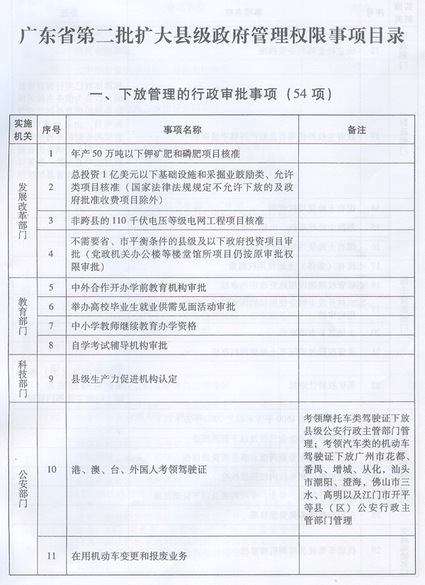 名稱: | 廣東省第二批擴(kuò)大縣級政府管理權(quán)限事項目錄 | ||