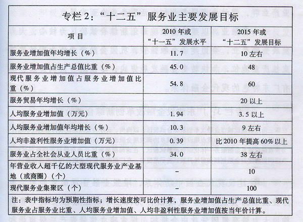 ? ——房地產(chǎn)業(yè)。加強(qiáng)和改善房地產(chǎn)調(diào)控,促進(jìn)房地產(chǎn)業(yè)健康發(fā)展。鼓勵(lì)住房合理消費(fèi),抑制投機(jī)炒作。調(diào)整住房供應(yīng)結(jié)構(gòu),大力發(fā)展中低價(jià)位、中小套型普通商品住宅,滿足不同層次居民的多元化住房需求。創(chuàng)新保障房建設(shè)機(jī)制,引導(dǎo)社會(huì)資本參與保障性住房建設(shè)。順應(yīng)現(xiàn)代服務(wù)業(yè)快速發(fā)展需要,多元化發(fā)展商業(yè)地產(chǎn)、城市綜合體等業(yè)態(tài),培育發(fā)展“樓宇經(jīng)濟(jì)”。培育和規(guī)范住房租賃市場,完善物業(yè)行業(yè)管理,擴(kuò)大城鎮(zhèn)物業(yè)管理覆蓋面,建立和完善舊住宅區(qū)推行物業(yè)管理的長效機(jī)制,到2015年,珠江三角洲地區(qū)基本實(shí)現(xiàn)物業(yè)管理全覆蓋,其他地區(qū)達(dá)到70%。 ——家庭服務(wù)業(yè)。大力發(fā)展面向城鄉(xiāng)社區(qū)和家庭的服務(wù)業(yè),滿足居民日益增長的多樣化、多層次的服務(wù)需求。加強(qiáng)政策引導(dǎo),鼓勵(lì)社會(huì)資金投資家庭服務(wù)行業(yè),推進(jìn)家庭服務(wù)業(yè)公益信息服務(wù)平臺(tái)建設(shè),加快形成家庭服務(wù)網(wǎng)絡(luò),推動(dòng)家庭服務(wù)社會(huì)化、產(chǎn)業(yè)化發(fā)展。引導(dǎo)有條件的家庭服務(wù)企業(yè)通過資源整合和采取連鎖經(jīng)營的方式向規(guī)?;⒁?guī)范化和品牌化方向發(fā)展。鼓勵(lì)家庭服務(wù)企業(yè)實(shí)行員工制管理,進(jìn)一步規(guī)范家庭服務(wù)市場秩序。加強(qiáng)家庭服務(wù)員職業(yè)技能培訓(xùn),逐步推行持證上崗,提高從業(yè)人員素質(zhì)。 ?。ㄈ┐罅訌?qiáng)公共服務(wù)。 以實(shí)現(xiàn)城鄉(xiāng)、區(qū)域和群體間基本公共服務(wù)均等化為目標(biāo),大力提升公共服務(wù)能力,提高公共服務(wù)水平,建設(shè)覆蓋全民的公共服務(wù)和社會(huì)保障體系。加大財(cái)政對基本公共服務(wù)尤其是公共教育、公共衛(wèi)生、公共文化體育、公共交通四項(xiàng)“基礎(chǔ)服務(wù)”以及生活保障、住房保障、就業(yè)保障、醫(yī)療保障等四項(xiàng)“基本保障”的投入力度,加快建成覆蓋城鄉(xiāng)、功能完善、分布合理、管理有效、水平適度的基本公共服務(wù)體系。進(jìn)一步提高義務(wù)教育經(jīng)費(fèi)保障水平,重點(diǎn)改善欠發(fā)達(dá)地區(qū)師資隊(duì)伍建設(shè)和辦學(xué)條件,加強(qiáng)普通教育與職業(yè)教育、中等職業(yè)教育與高等職業(yè)教育以及各類高等教育之間的銜接。加強(qiáng)公共衛(wèi)生機(jī)構(gòu)能力建設(shè),提升基層公共衛(wèi)生服務(wù)水平。建立健全公共文化設(shè)施網(wǎng)絡(luò),繼續(xù)實(shí)施廣播電視“村村通”、公共文化流動(dòng)服務(wù)等工程,健全全民健身活動(dòng)體系和群眾體育競賽體系。保障公共交通優(yōu)先發(fā)展,加大農(nóng)村公路建設(shè)力度,擴(kuò)大農(nóng)村客運(yùn)網(wǎng)絡(luò)覆蓋面。完善城鎮(zhèn)職工基本養(yǎng)老保險(xiǎn)制度,普遍建立并不斷完善農(nóng)村養(yǎng)老保障制度和城鄉(xiāng)無保障老年居民養(yǎng)老保障制度。加強(qiáng)保障性安居工程建設(shè),建立以公共租賃房為主體的住房保障體系。繼續(xù)推進(jìn)全民技能提升和儲(chǔ)備計(jì)劃,完善城鄉(xiāng)平等的就業(yè)援助制度和創(chuàng)業(yè)促進(jìn)就業(yè)服務(wù)體系。繼續(xù)推進(jìn)城鄉(xiāng)居民基本醫(yī)療保障制度,全面建立城鄉(xiāng)一體化的基本醫(yī)療保險(xiǎn)制度和醫(yī)療救助制度。積極改進(jìn)和完善政府公共服務(wù),推行政府采購服務(wù)、資金補(bǔ)貼服務(wù)等制度,提高公共服務(wù)產(chǎn)品供給質(zhì)量和效率。 探索基本公共服務(wù)多樣化供給形式,鼓勵(lì)和引導(dǎo)社會(huì)組織或個(gè)人參與公共服務(wù),提高人民群眾對公共服務(wù)的滿意度。積極推進(jìn)醫(yī)療、教育等社會(huì)事業(yè)領(lǐng)域改革,積極運(yùn)用市場機(jī)制,鼓勵(lì)和引導(dǎo)民間資本進(jìn)入可以實(shí)行市場化運(yùn)作的市政工程和其他公共服務(wù)領(lǐng)域,加快培育形成政府投入為主、民間投資為輔的公共服務(wù)體系。支持民間資本參與城市供水、供氣、污水和垃圾處理、公共交通、城市園林綠化等市政公用事業(yè)建設(shè),具備條件的市政公用事業(yè)項(xiàng)目積極采取市場化的經(jīng)營方式,向民間資本轉(zhuǎn)讓產(chǎn)權(quán)或經(jīng)營權(quán)。大力推行市政公用事業(yè)的投資主體、運(yùn)營主體招標(biāo)制度,建立健全市政公用事業(yè)特許經(jīng)營制度。支持民間資本興辦各類醫(yī)院、社區(qū)衛(wèi)生服務(wù)機(jī)構(gòu)、療養(yǎng)院、門診部、診所、衛(wèi)生所(室)等醫(yī)療機(jī)構(gòu),支持民營醫(yī)療機(jī)構(gòu)承擔(dān)公共衛(wèi)生服務(wù)和基本醫(yī)療服務(wù),符合條件的民營醫(yī)療機(jī)構(gòu)納入醫(yī)療保險(xiǎn)定點(diǎn)范圍。支持民間資本興辦高等學(xué)校、中小學(xué)校、幼兒園、職業(yè)教育等各類教育和社會(huì)培訓(xùn)機(jī)構(gòu),落實(shí)對民辦學(xué)校的人才鼓勵(lì)政策和公共財(cái)政資助政策。通過用地保障、信貸支
