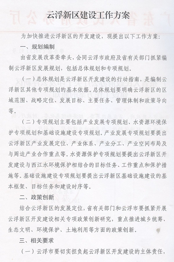 名稱: | 廣東省人民政府辦公廳關(guān)于印發(fā)云浮新區(qū)建設(shè)工作方案的通知 | ||