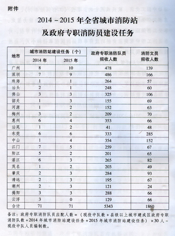 附件:2014-2015年全省城市消防站及政府專職消防員建設任務