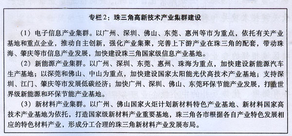——打造高新技術(shù)產(chǎn)業(yè)集群。積極落實(shí)《廣東省高新區(qū)創(chuàng)新型產(chǎn)業(yè)集群建設(shè)方案》(粵科函高字〔2012〕893號(hào)),加快建設(shè)深圳下一代互聯(lián)網(wǎng)、惠州智能終端與云計(jì)算應(yīng)用、中山健康科技等國(guó)家創(chuàng)新型產(chǎn)業(yè)集群建設(shè)試點(diǎn),培育和建設(shè)廣州北斗衛(wèi)星導(dǎo)航、珠海軟件及集成電路設(shè)計(jì)等省級(jí)創(chuàng)新型產(chǎn)業(yè)集群,推進(jìn)各高新園區(qū)形成優(yōu)勢(shì)特色產(chǎn)業(yè)。具體詳見專欄2。