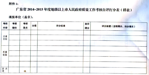 3.廣東省2014-2015年度地級以上市人民政府質(zhì)量工作考核自評打分表(樣表)
