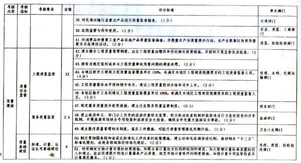 ?。ǘ┪膶彸踉u。9月下旬至10月上旬,省質(zhì)量強省辦組織省質(zhì)量強省工作領(lǐng)導(dǎo)小組相關(guān)成員單位和專家,依據(jù)各地報送的考核材料和工作實際,就考核材料的完整性、準(zhǔn)確性,以及質(zhì)量目標(biāo)和質(zhì)量措施的落實情況進(jìn)行初步評審。