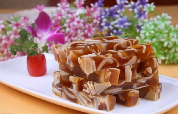 潮州凍肉是一道廣東省的漢族傳統(tǒng)名菜,屬于粵菜系潮州菜。為廣東的冬令涼菜。具有養(yǎng)顏美容調(diào)理 骨質(zhì)疏松調(diào)理的功效。味鮮軟滑,入口即化,肥而不膩;伴以魚露、芫荽,風(fēng)味特殊。以肥豬肉,豬腳,豬肉皮,冰糖,魚露等制作而成。
