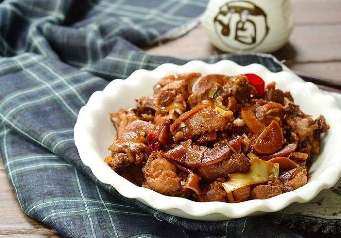 這是一道很獨(dú)特的客家名菜。特別的酸筍味讓鮮美的鴨肉更是余味綿長,而鴨肉味入筍,不僅中和、減少了筍原有的酸味,而且讓筍既脆又鮮甜,別是一番風(fēng)味。當(dāng)然,許多初次接觸酸筍的人便如同初次吃榴連的人一樣,可能不一定能馬上接受那種特別的味道。而一旦你適應(yīng)了,也會像一些愛吃榴連的人一樣越吃越上癮。都說湖南人不怕辣,南雄人是怕不辣。酸筍燜鴨隔餐吃更美味,此時的味道才全浸入到鴨子里面,夠辣夠味。廣州好像也有酸筍賣,但那酸筍跟客家山區(qū)的完全不一樣,廣州的酸筍好像大都是筍皮,而客家山區(qū)的酸筍卻是用龍竹筍苗或春筍腌制而成的。就味道來說,也是完全兩種不同的東西。在客家山區(qū),所有原材料都是最地道的,客家人常變著花樣做一些客家菜,比如酸筍燜鴨、酸筍炒大腸、酸筍炒肚尖等。除此之外,酸筍燜鵝也是很有名氣的客家菜系
