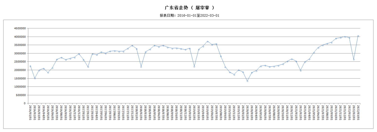 對全省316家生豬定點屠宰企業(yè)跟蹤監(jiān)測,3月份共屠宰生豬4060841頭,比2月份上升53.83%。