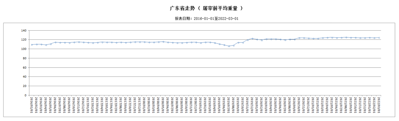 3月份,跟蹤監(jiān)測的316家生豬定點屠宰企業(yè)生豬屠宰前平均重量124.94公斤,環(huán)比上升0.64%。