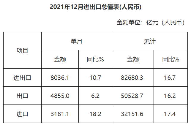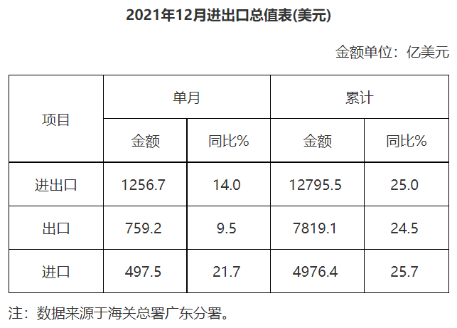 廣東省外貿(mào)進出口總值表(2021年12月)