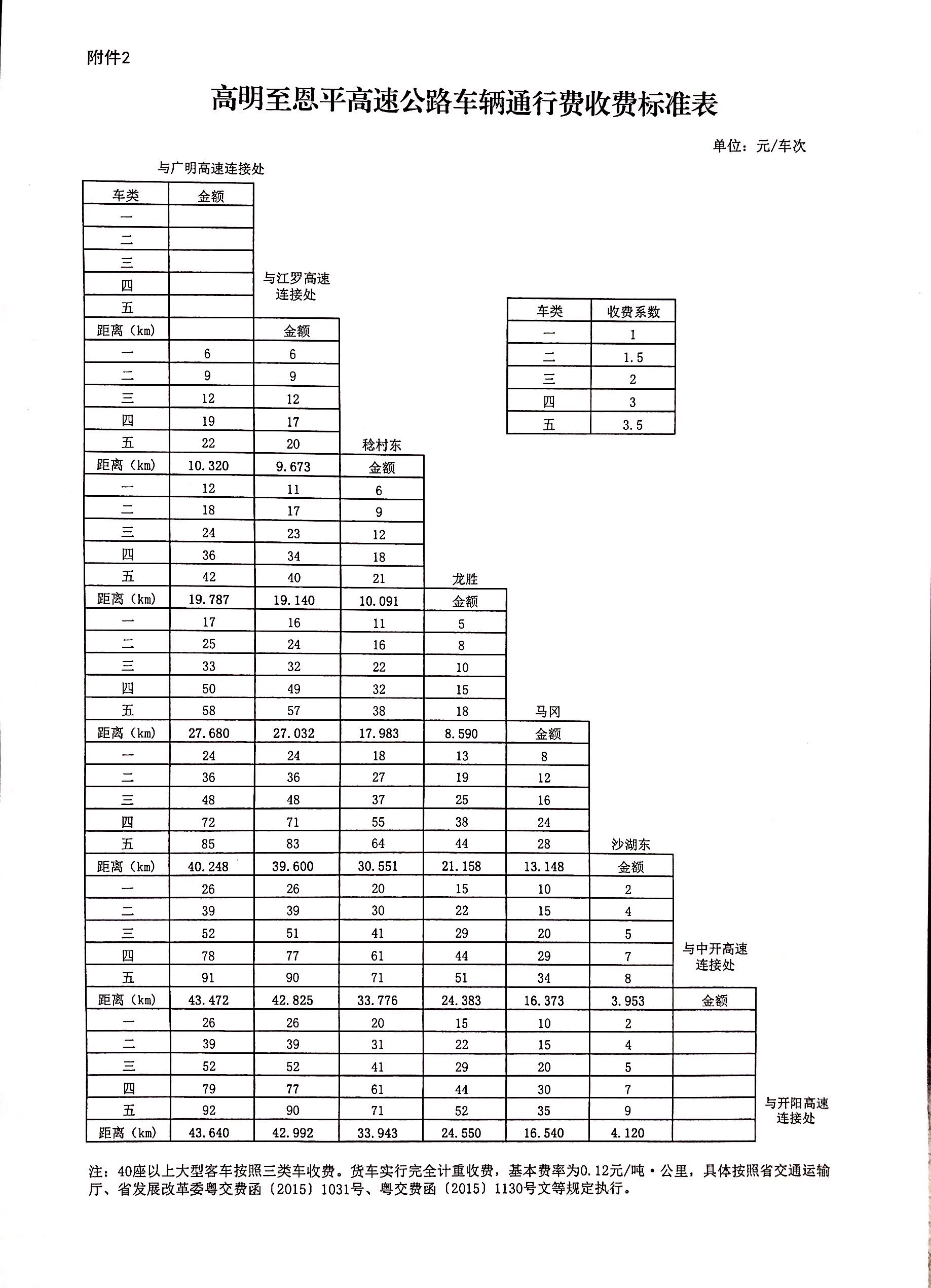 2.高明至恩平高速公路車輛通行費(fèi)收費(fèi)標(biāo)準(zhǔn)表