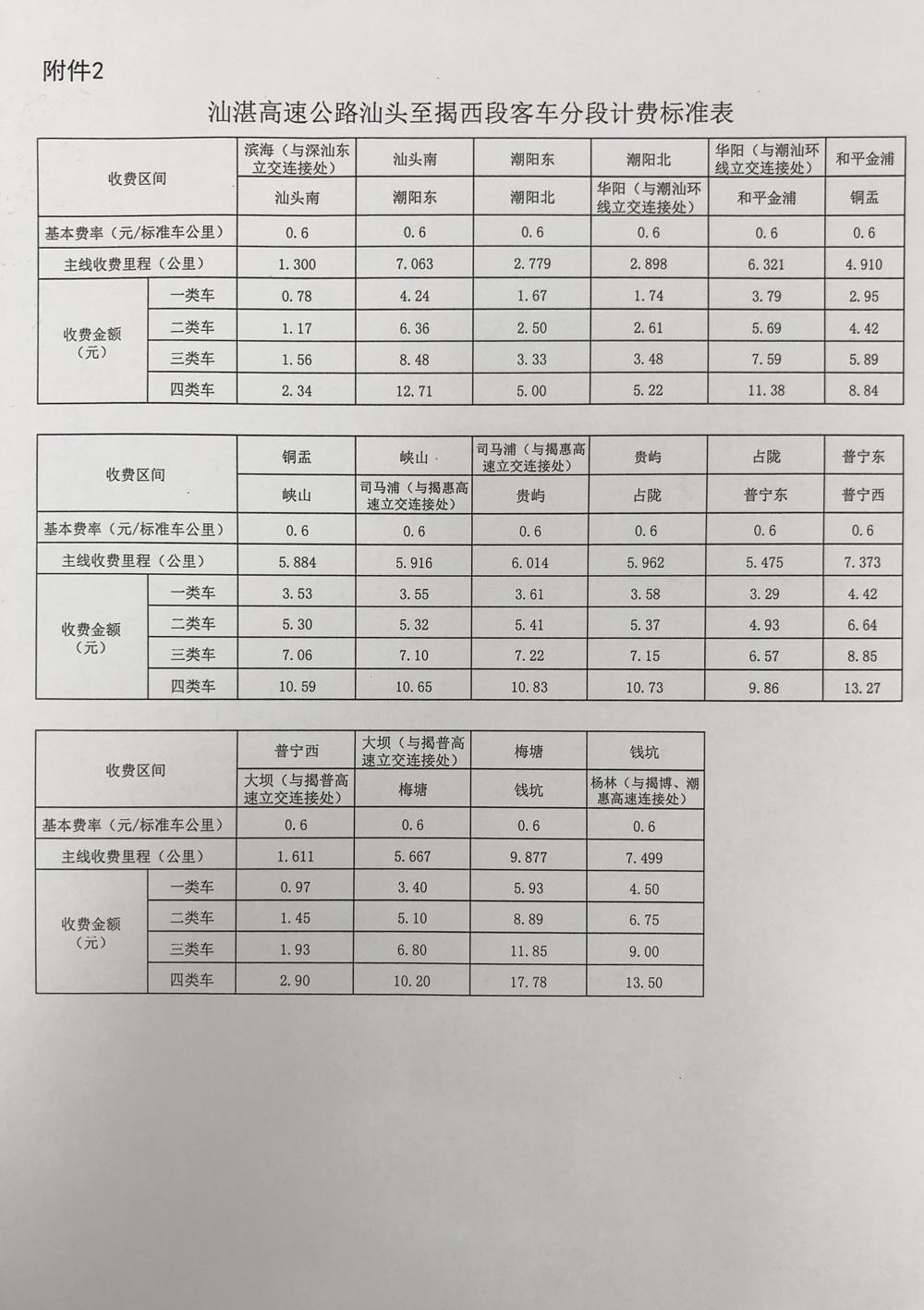 2.汕湛高速公路汕頭至揭西段客車(chē)分段計(jì)費(fèi)標(biāo)準(zhǔn)表