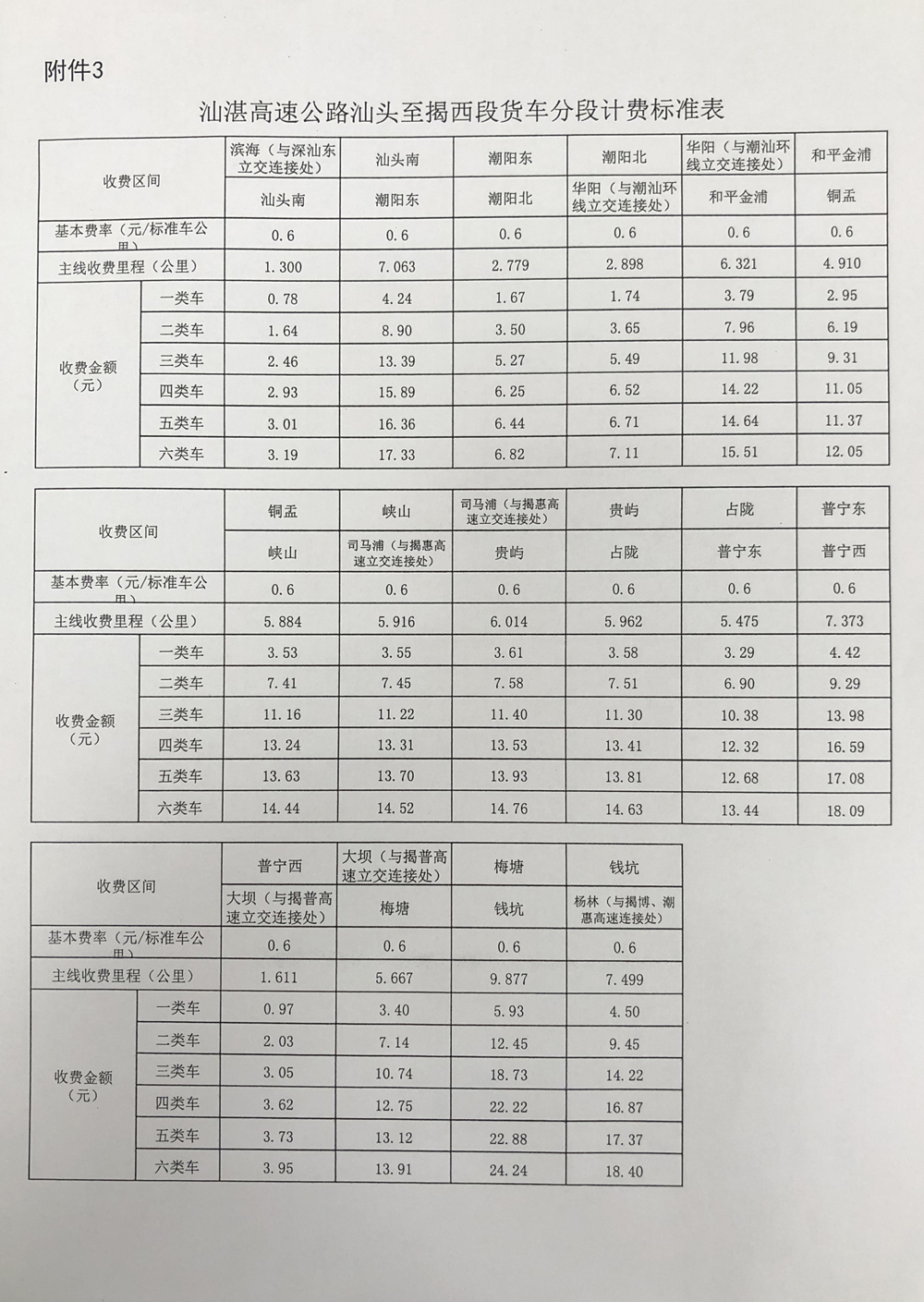 3.汕湛高速公路汕頭至揭西段貨車(chē)分段計(jì)費(fèi)標(biāo)準(zhǔn)表