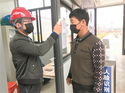 地鐵十二號線第八項目部每日進(jìn)行體溫測量。圖片來源:廣州日報