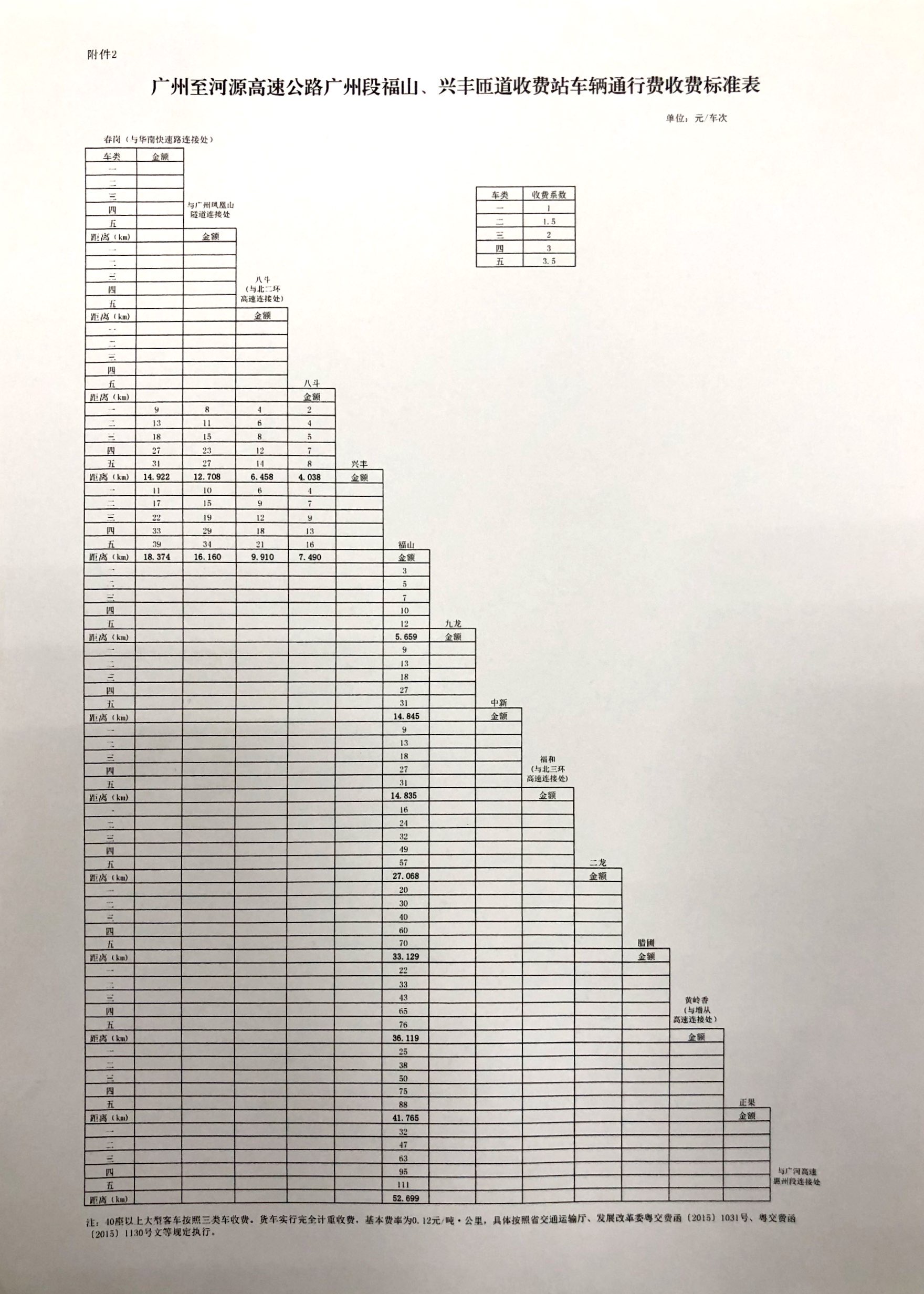2.廣州至河源高速公路廣州段福山、興豐匝道收費站車輛通行費收費標準表